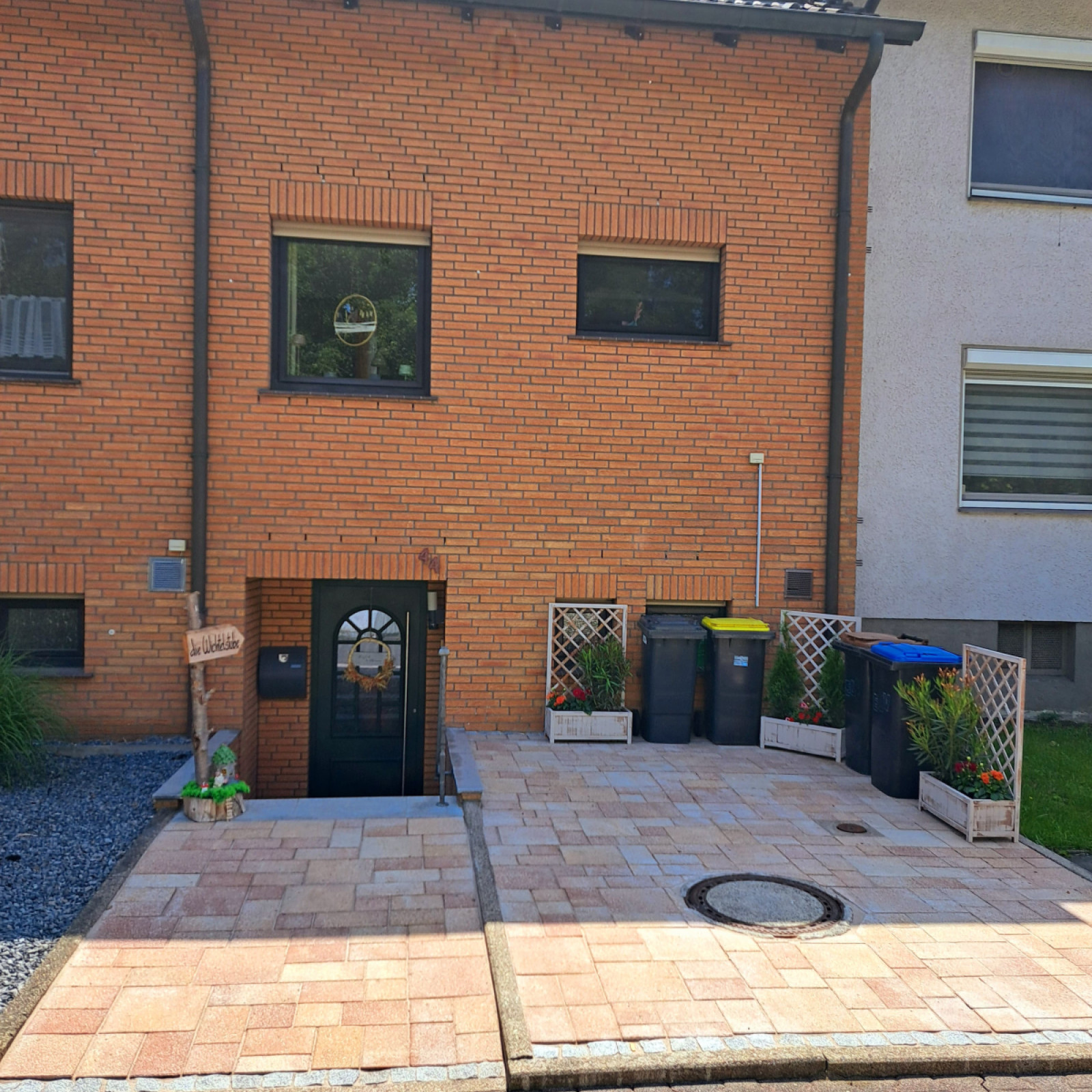 Vor unserem Haus befindet sich noch ein großer Garagenhof mit unserer Garage. Hier kann zwischendurch auch mal gespielt werden.