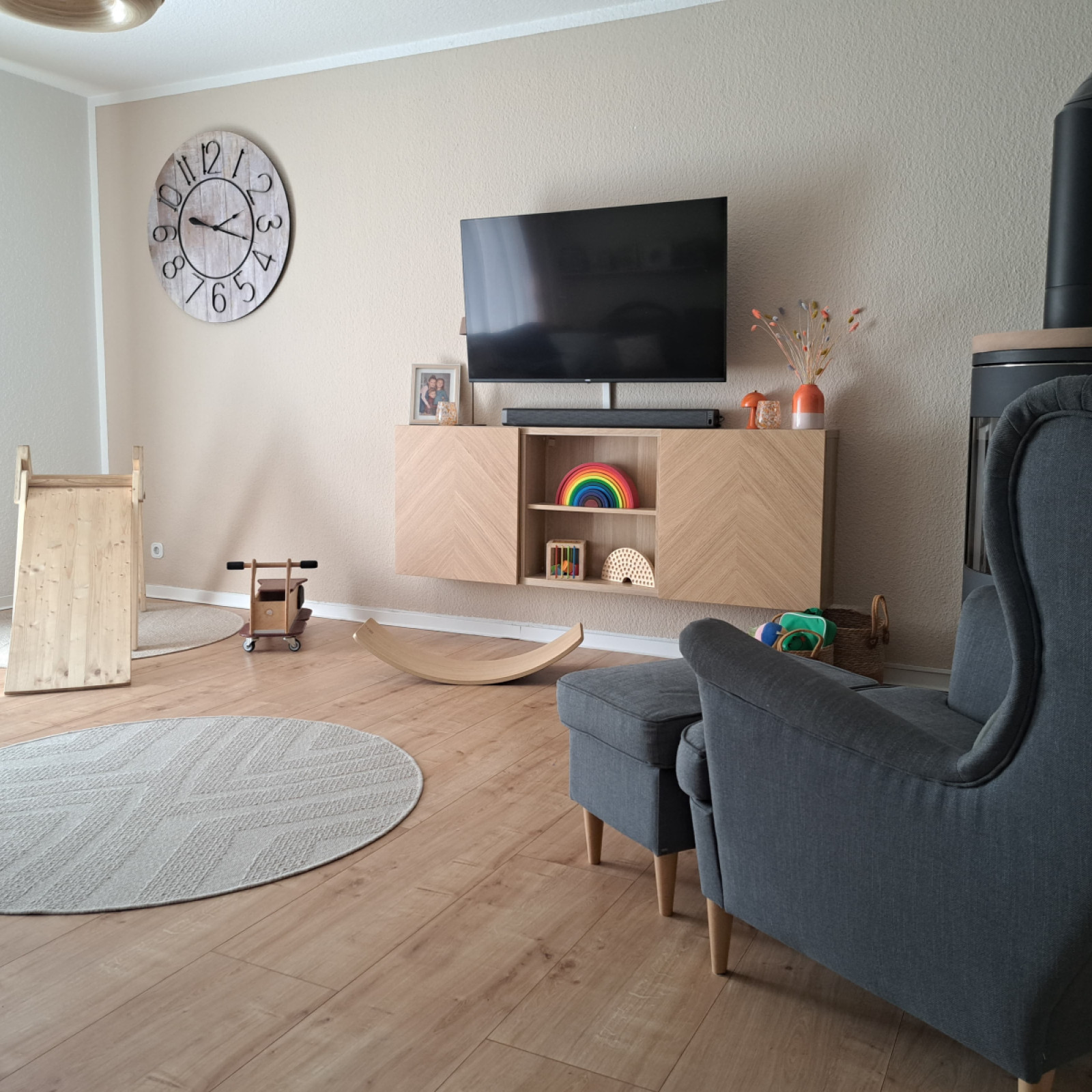Im Haus werden wir uns am meisten in der „Wichtelstube“ oder im Wohnraum aufhalten, die Kinderzimmer meiner Kinder befinden sich eine bzw. zwei Etagen höher. Diese werden wir nicht nutzen, da ich die Privatsphäre meiner Kinder achten möchte und sie auch ihren Rückzugsort für sich haben sollen, wenn sie aus der Schule kommen.