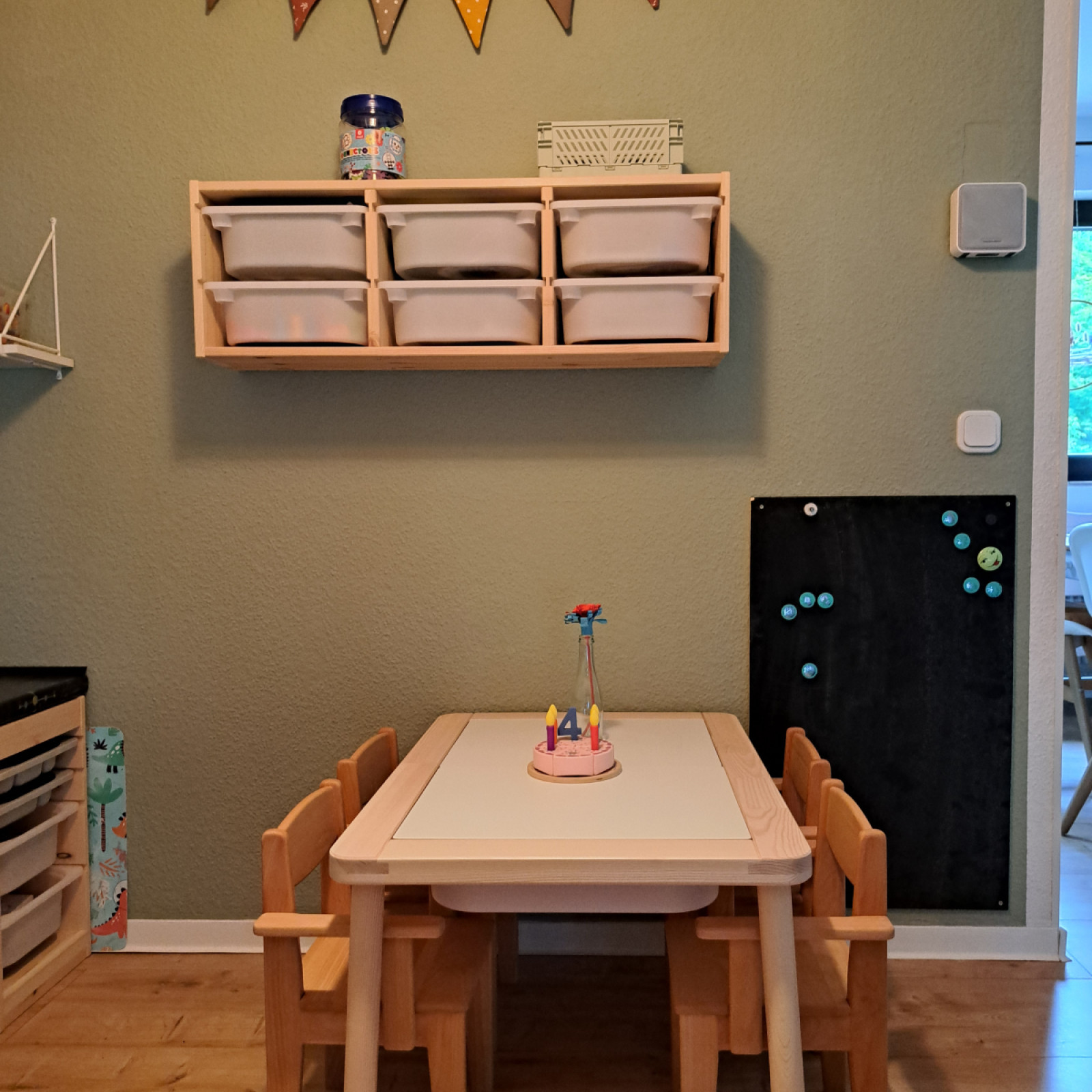 Ich bin ein Mensch, der auch bei nicht so gutem Wetter raus geht, sollte es jedoch stark regnen oder gewittern, werden wir in dieser Zeit in der "Wichtelstube“ oder im Wohnraum unseren Vormittag verbringen. Um den Kindern an solchen Tagen trotzdem Raum für Bewegung zu bieten, werde ich den Wohnraum entsprechend gestalten und z.B. einen kleinen Parcours aus Flusssteinen und dem Balanceboard aufbauen.