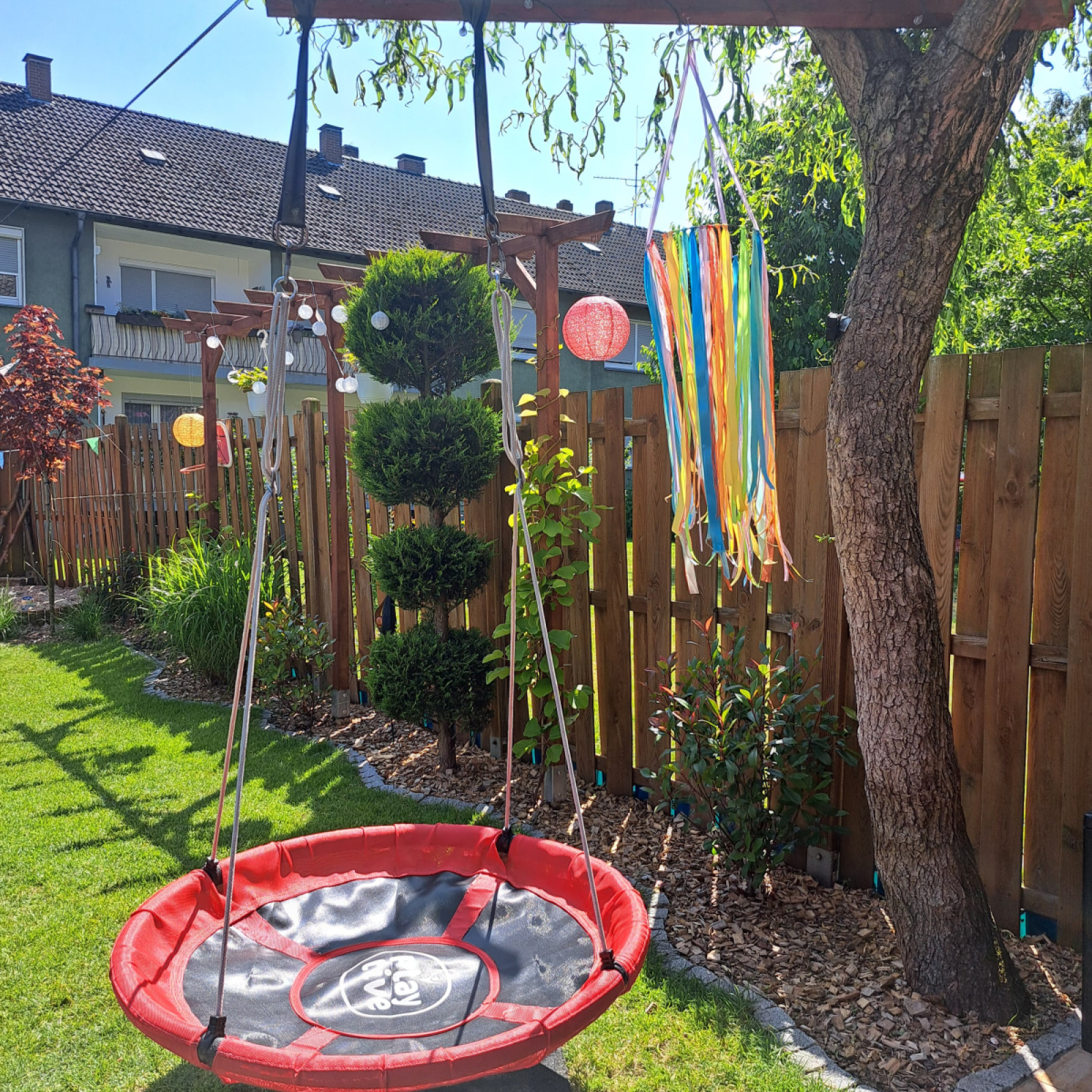 oder wir spielen in unserem Garten. Je nach Bedarf und Lust und