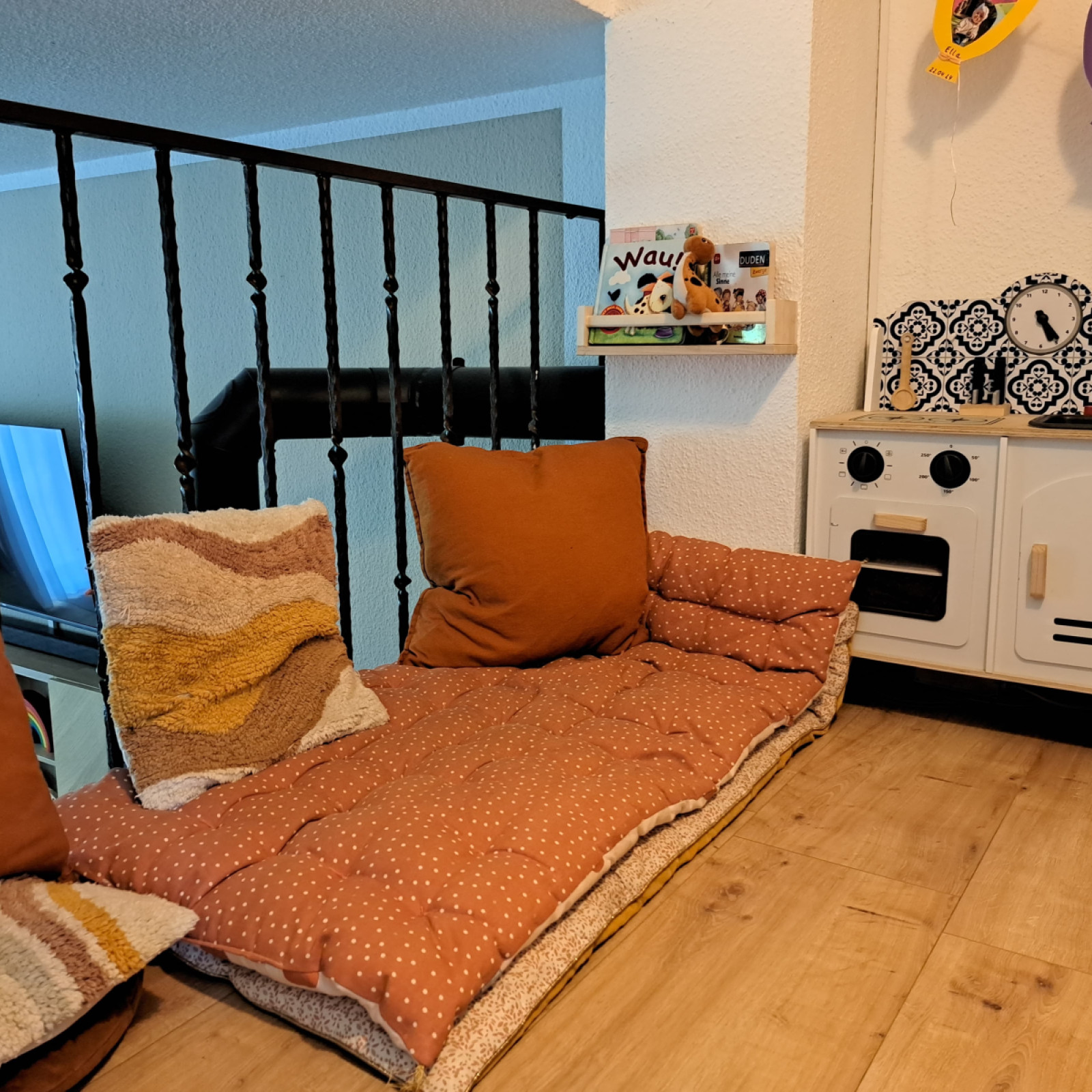 Nachdem essen werden die Kinder sich ihre Gesichter und Hände waschen und dann werden wir uns im Schlafzimmer zur Mittagsruhe/ Mittagschlaf zurückziehen. Sollten die etwas Älteren keinen Mittagschlaf mehr benötigen, haben sie bis die kleineren Kinder schlafen die Möglichkeit sich auszuruhen und die bisherigen Erlebnisse und Eindrücke zu verarbeiten. Sobald dann alle eingeschlafen sind, können die Kinder die nicht schlafen möchten dann wieder mit mir runter gehen und wir werden aus Rücksicht auf die Mittagsruhe ruhigen Beschäftigungen nachgehen. Im Schlafzimmer befindet sich oben an der Treppe ein Treppenschutz und im Schlafzimmer befindet sich ebenfalls ein Babyphone, so dass ich sofort wieder nach oben gehe, sobald ein Kind wach wird.
